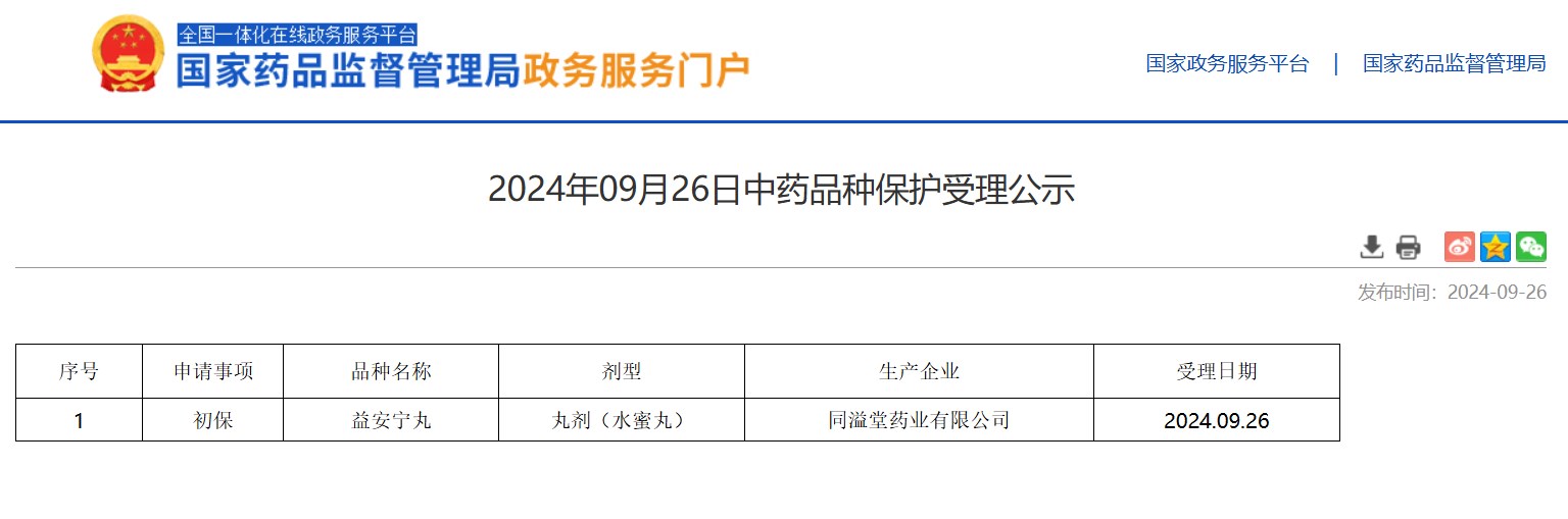 2024年09月26日中藥品種保護(hù)受理公示