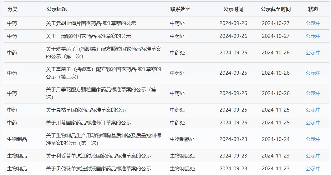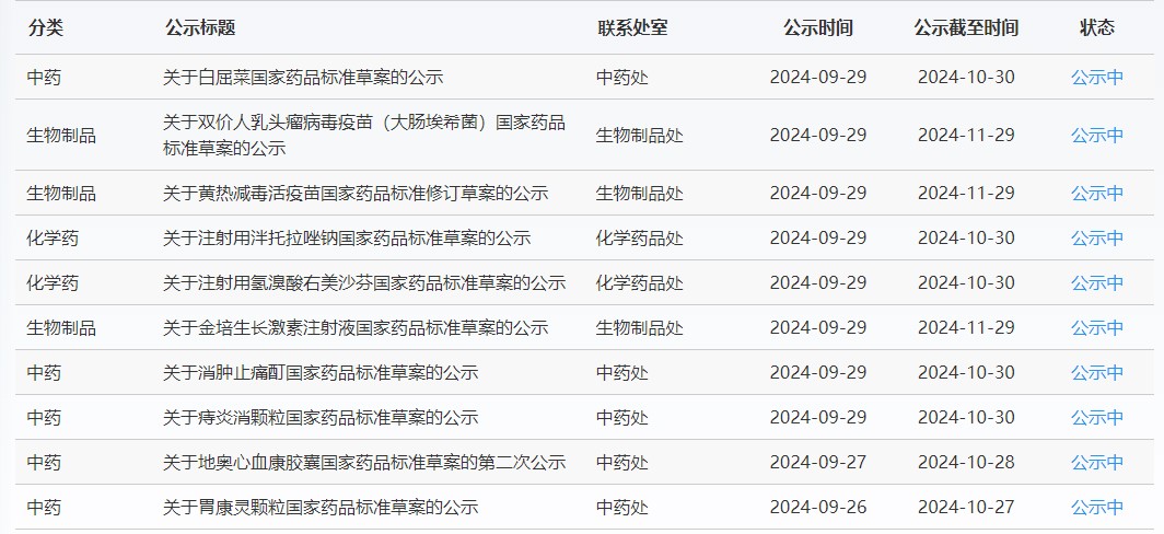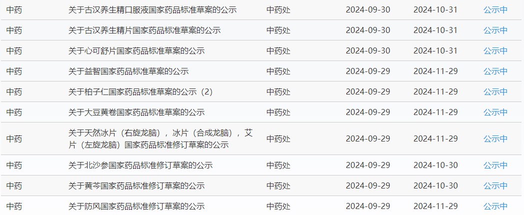 近期,藥典委發(fā)布的標(biāo)準(zhǔn)草案公示如下: