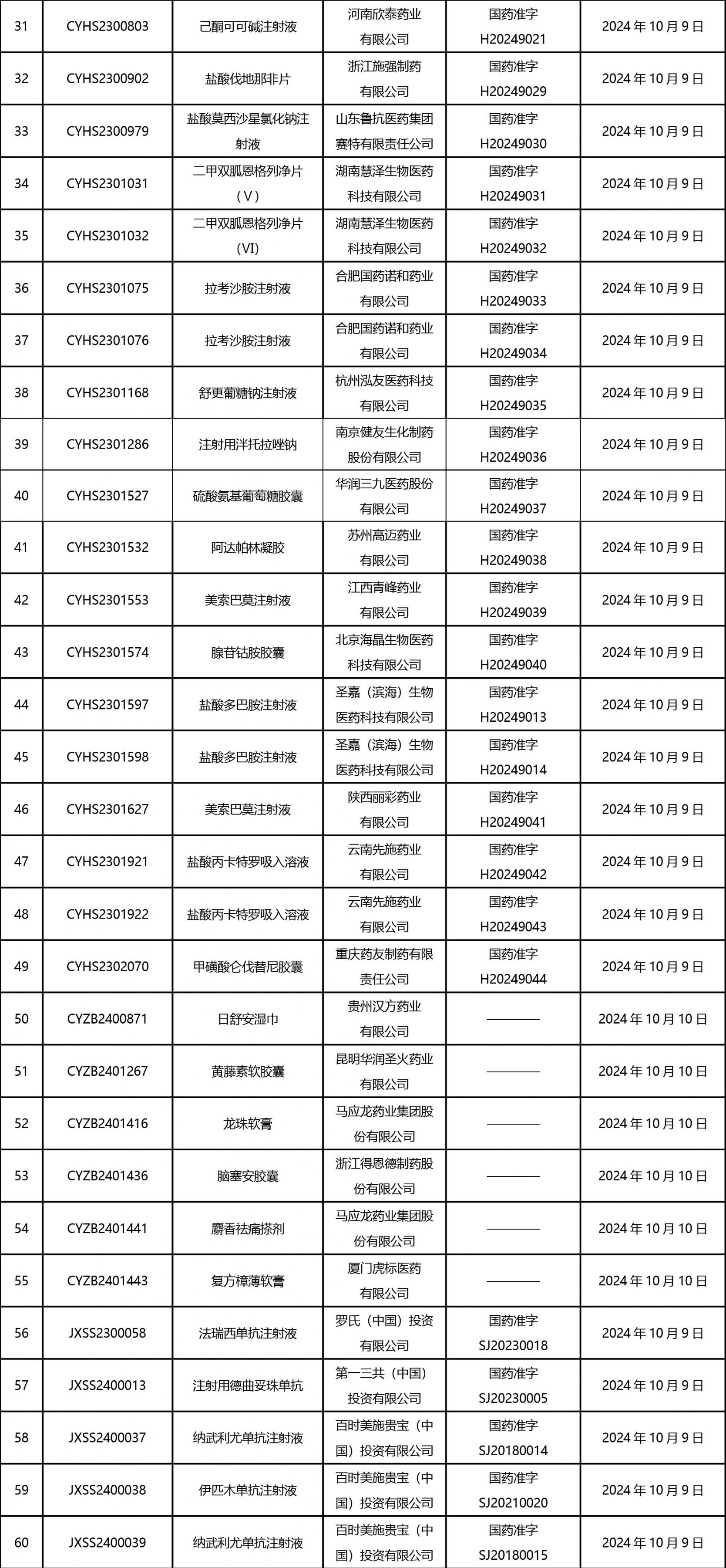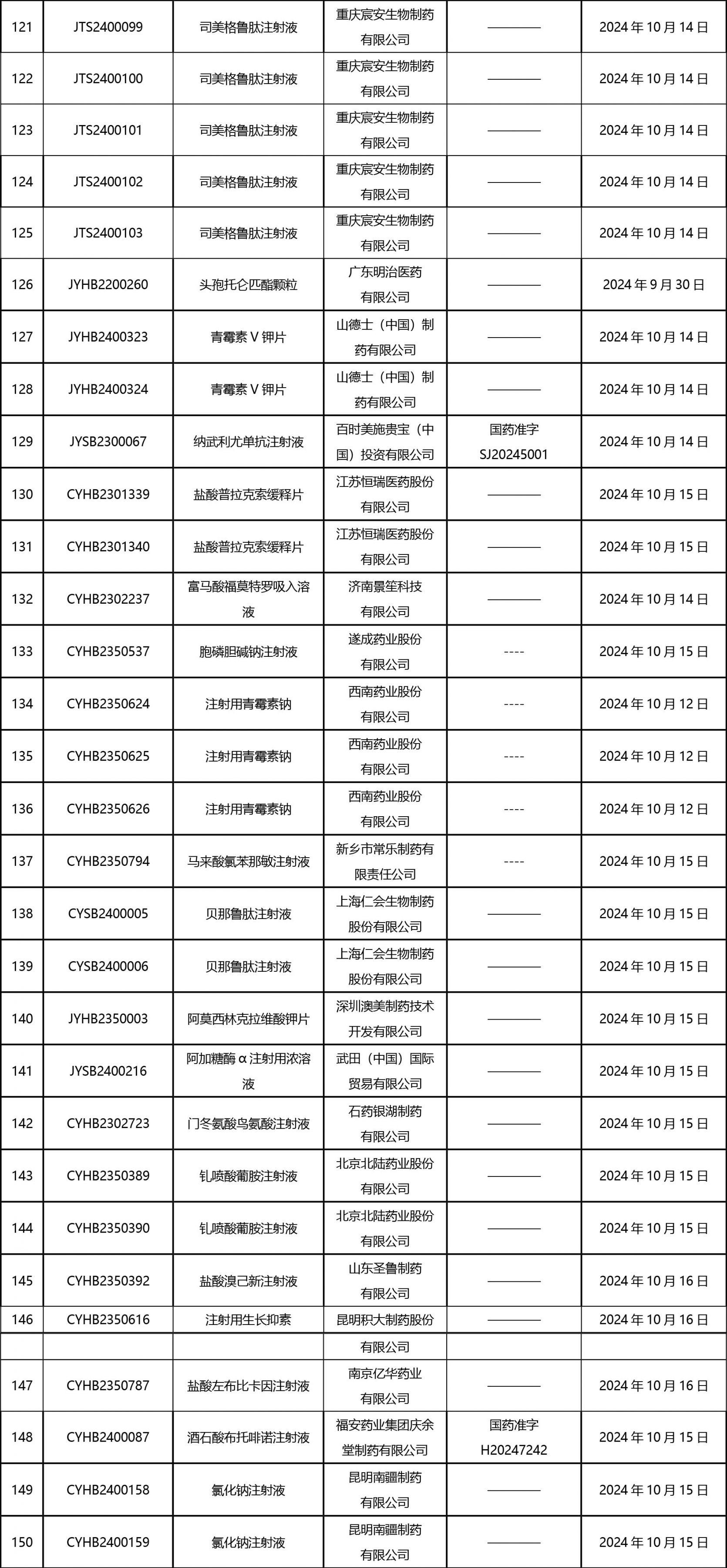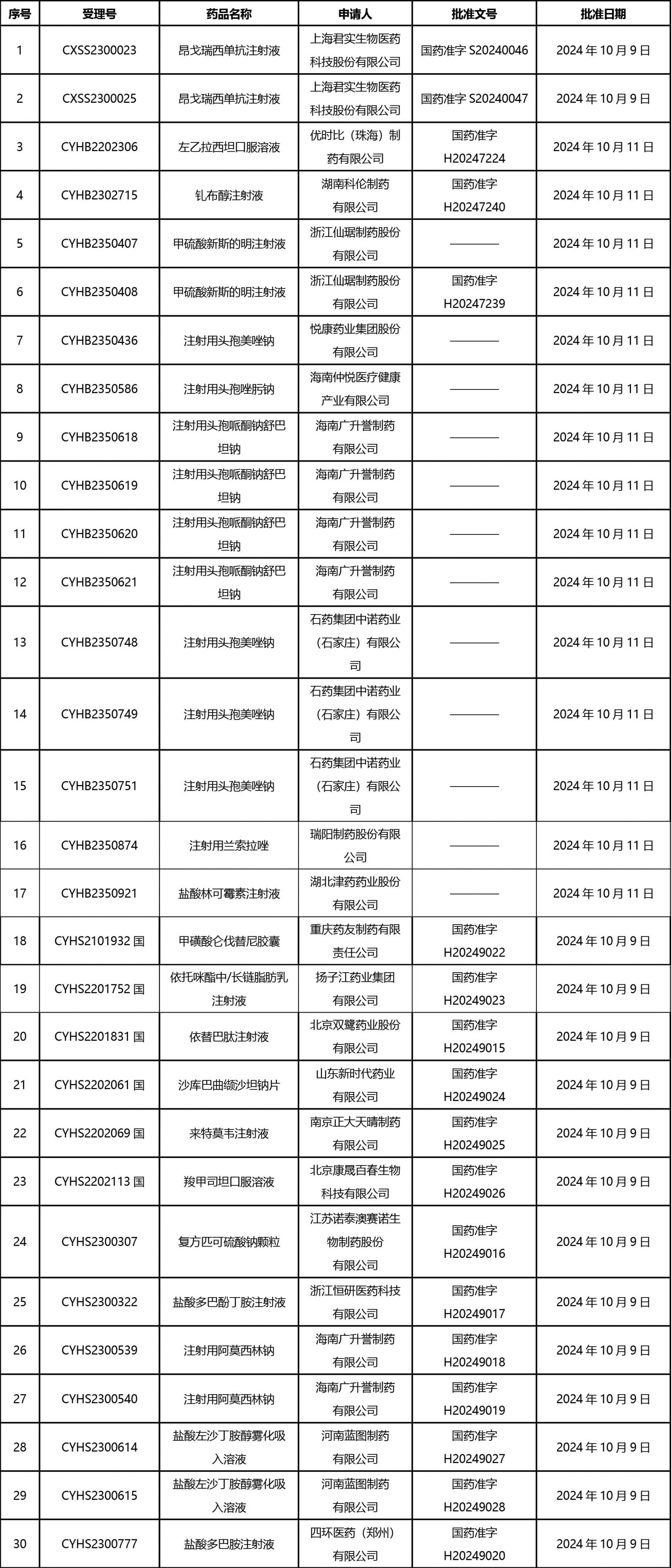 截止2024年10月18日 15:00本周發(fā)布161個待領(lǐng)取藥品批準(zhǔn)證明文件,其中注射液84個,一致性評價品種30個。