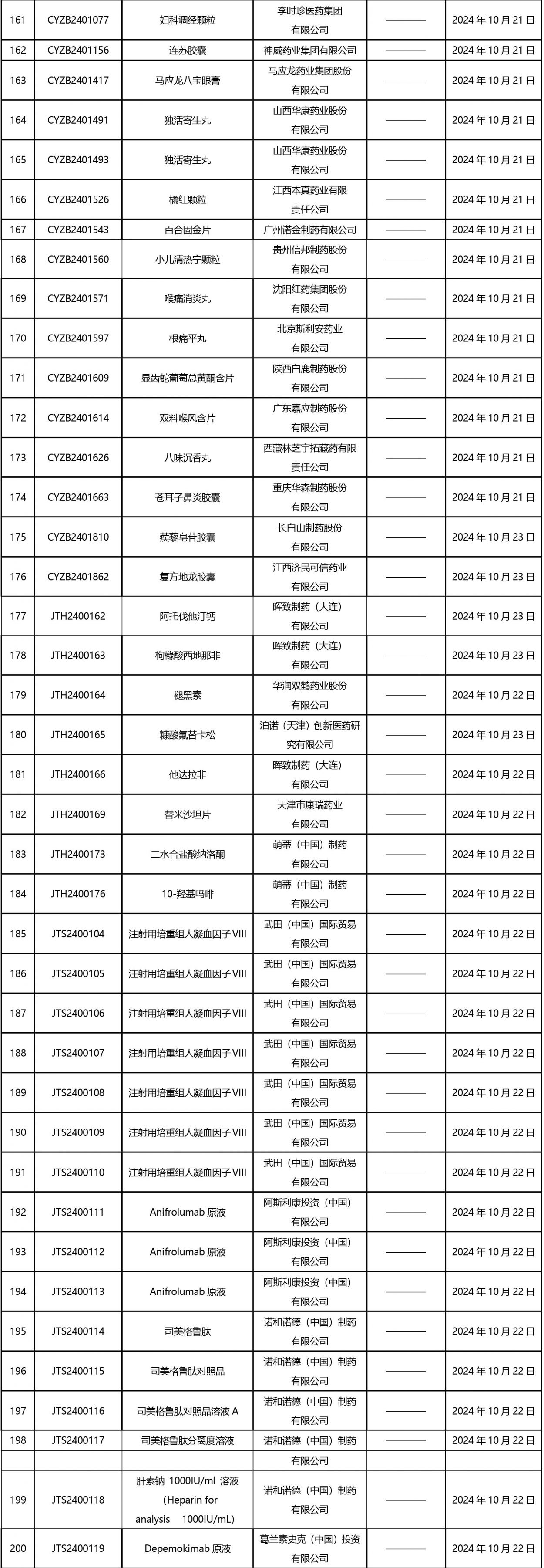 2024年10月21日至2024年11月1日 16:00發(fā)布368個(gè)待領(lǐng)取藥品批準(zhǔn)證明文件,其中注射液125個(gè),一致性評(píng)價(jià)品種45個(gè)。