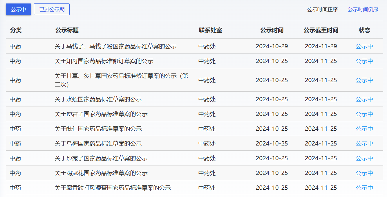 近期,藥典委發(fā)布的標(biāo)準(zhǔn)草案公示如下: