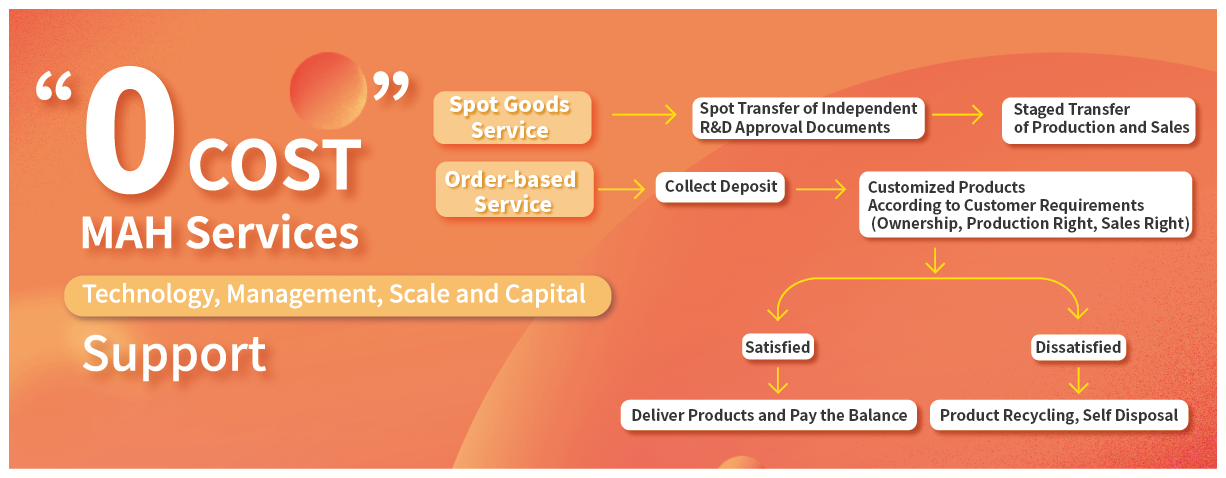 4)Based on the above, customers can propose personalized cooperation methods according to their own needs, such us inject capital to jointly develop varieties; Select the existing document number of Leadingpharm to carry out spot transfer or production, sales staged transfer and cooperative expansion; Customized products (varieties, rights and interests) shall be studied by Leadingpharm and accepted and confirmed by customers; Targeted services at the project stage include product approval, quality management, drug administration management, clinical operation management, COS and other module services.
