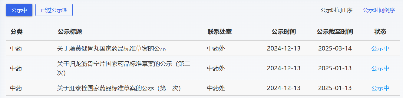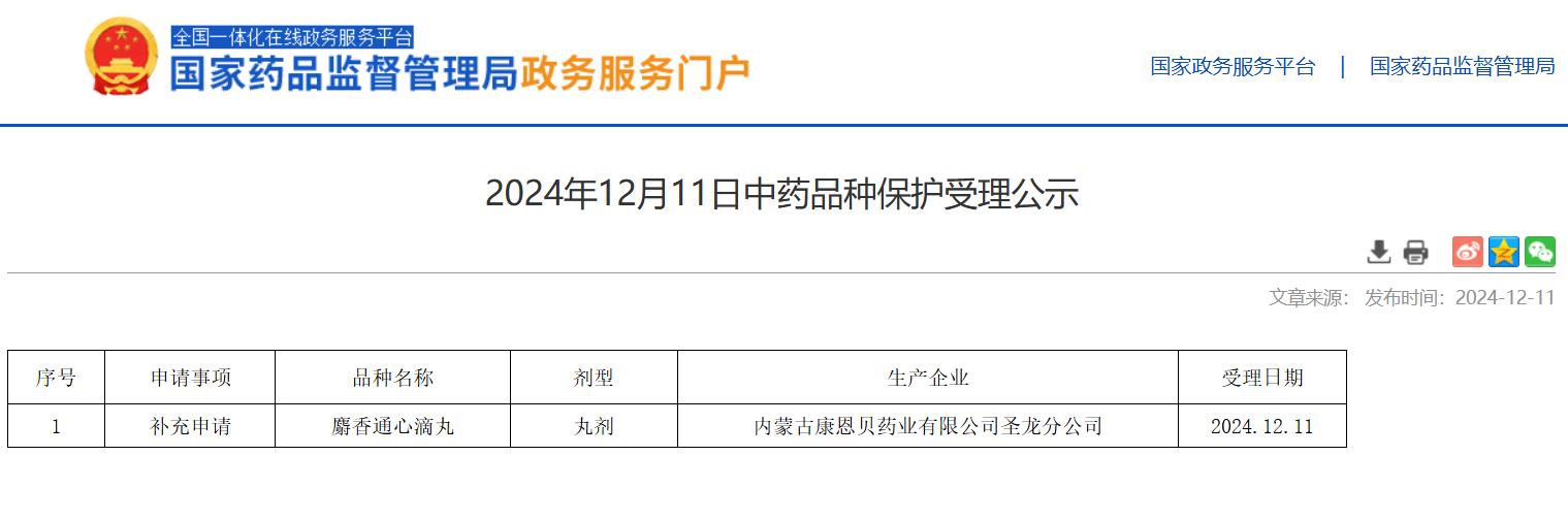 2024年12月11日中藥品種保護受理公示
