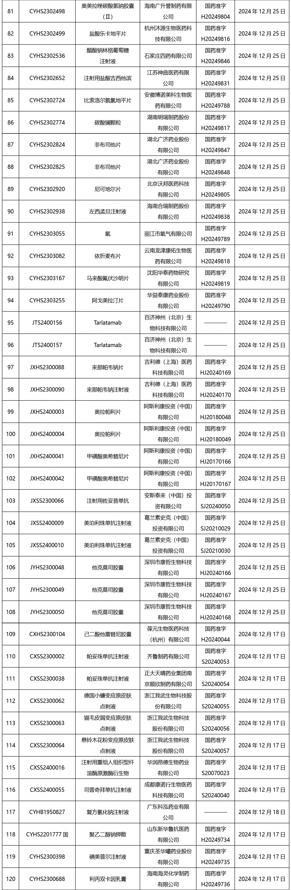 截止2025年1月3日17:00本周發(fā)布210個待領(lǐng)取藥品批準(zhǔn)證明文件,其中注射劑67個,一致性評價品種9個。