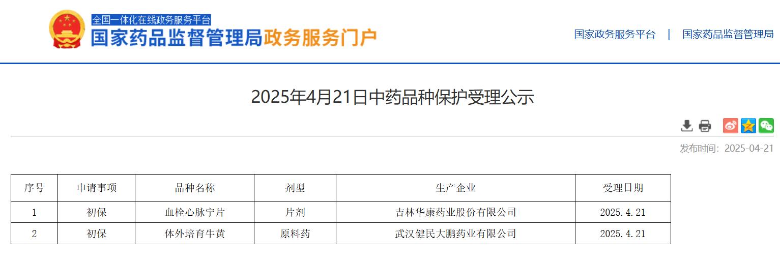 2025年4月21日中藥品種保護(hù)受理公示