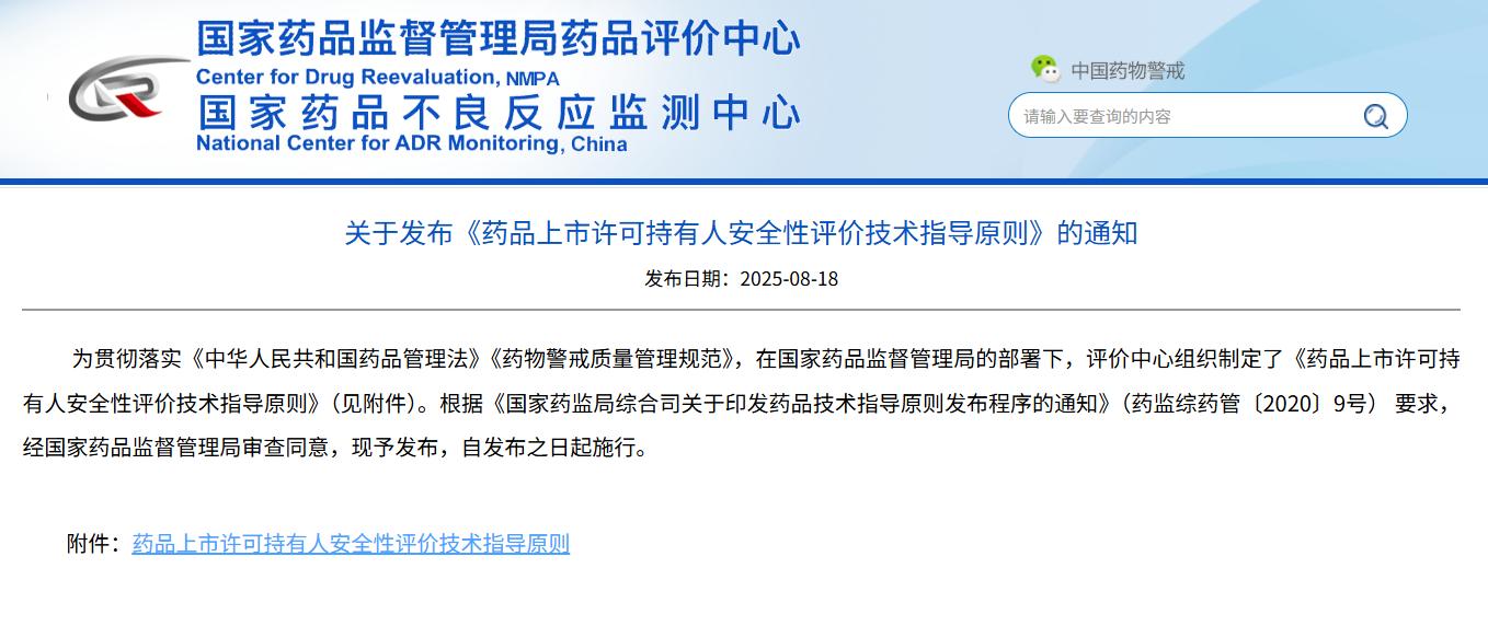 關(guān)于發(fā)布《藥品上市許可持有人安全性評價技術(shù)指導原則》的通知