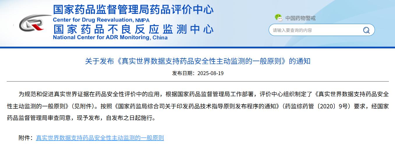 關(guān)于發(fā)布《真實世界數(shù)據(jù)支持藥品安全性主動監(jiān)測的一般原則》的通知