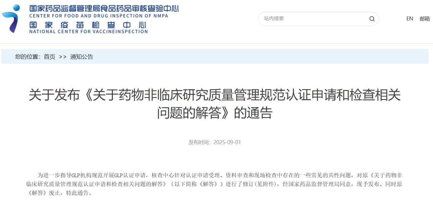 關(guān)于發(fā)布《關(guān)于藥物非臨床研究質(zhì)量管理規(guī)范認(rèn)證申請(qǐng)和檢查相關(guān)問題的解答》的通告