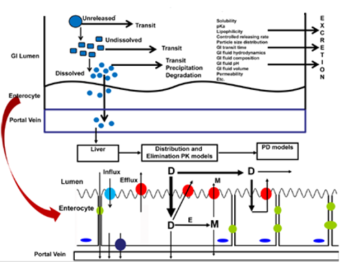 藥物經(jīng)口服吸收后在體內(nèi)吸收情況及在體內(nèi)吸收轉(zhuǎn)運過程如下圖所示:
