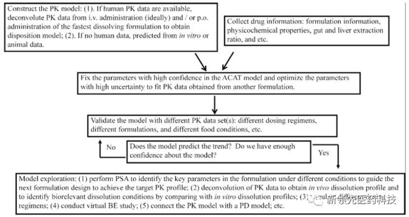 PK模型構(gòu)建:可通過人體IV數(shù)據(jù),利用反卷積方法計算PK數(shù)據(jù);或通過具有快速溶出的口服制劑,獲得處置模型;如無人體數(shù)據(jù),可利用體外數(shù)據(jù)進行預測,或采用動物數(shù)據(jù),進行推算。