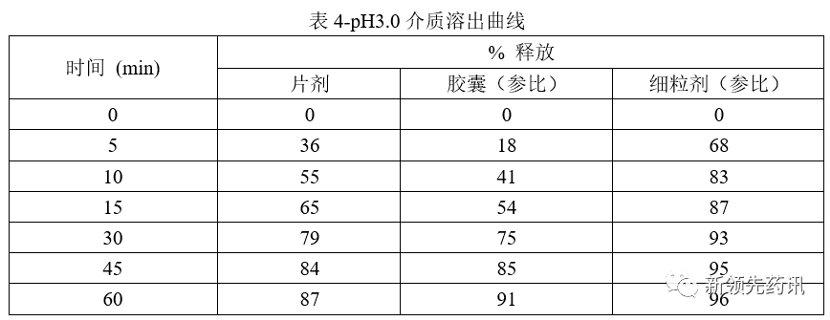 結(jié)論:由上述吸收曲線可知,采用pH3.0介質(zhì),預(yù)測體內(nèi)吸收曲線,片劑和膠囊劑具有相同吸收曲線。