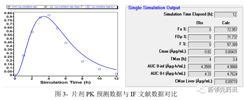 結(jié)論:以上數(shù)據(jù)表明,模型預(yù)測該品種片劑Cmax、AUC、Tmax值與IF文獻值基本一致,證明開發(fā)的模型預(yù)測良好。
