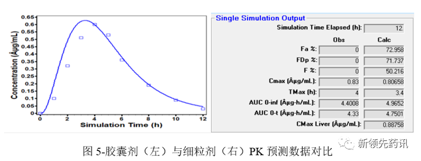 同理,采用Gastroplus軟件,對膠囊劑和細(xì)粒劑不同的體外溶出行為,建模進行預(yù)測,結(jié)果如下: