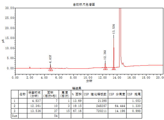 圖1 鹽酸鹽原料藥1號供試品GC色譜圖