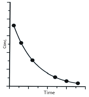 受試者服用溶液劑后,藥物在體內(nèi)沒有釋放過程,會(huì)被快速吸收,并分布及代謝和消除。所獲得的血藥濃度-時(shí)間曲線,如圖1所示。溶液劑不涉及藥物溶出過程,在體內(nèi)的吸收系數(shù)、分布體積、消除系數(shù)均與原料藥本身的藥動(dòng)學(xué)參數(shù)相關(guān),藥物在體內(nèi)的濃度可用指數(shù)方程C= C0e-kt來描述。