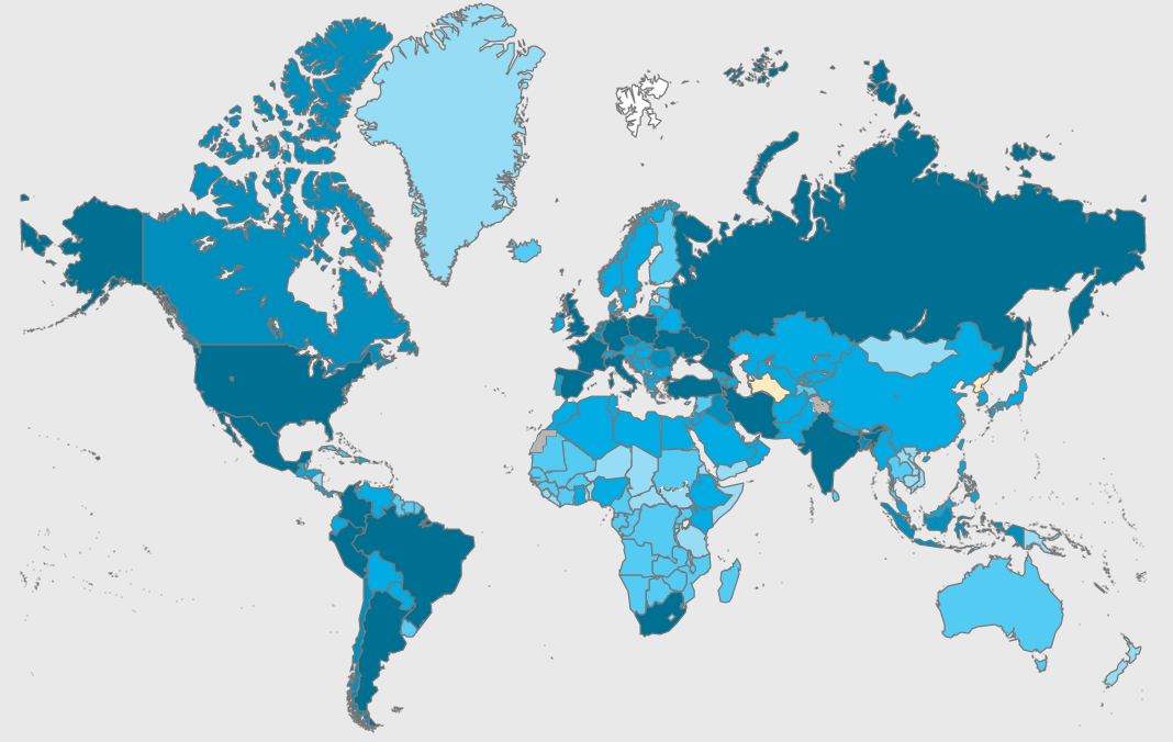 ▲ 新冠確診病例地區(qū)分布圖(圖源:WHO)