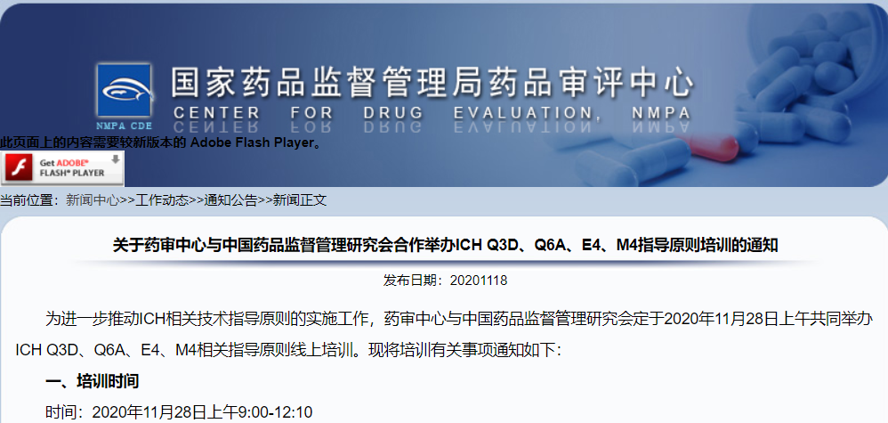 關(guān)于藥審中心與中國(guó)藥品監(jiān)督管理研究會(huì)合作舉辦ICH Q3D、Q6A、E4、M4指導(dǎo)原則培訓(xùn)的通知