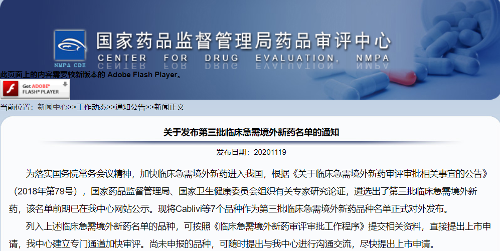 第三批臨床急需境外新藥名單發(fā)布