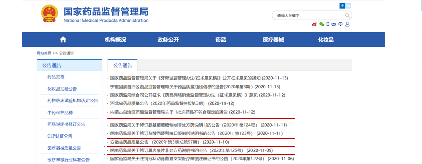 關(guān)于鹽酸西替利嗪口服制劑、氨基葡萄糖制劑非處方藥、鼻炎康片非處方藥說明書的修訂公告。