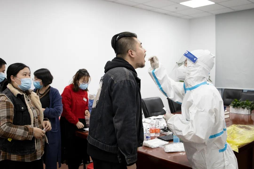 為方便低風(fēng)險(xiǎn)區(qū)員工回家過年,新領(lǐng)先預(yù)約了核酸檢測上門服務(wù),組織集體檢測,不用到醫(yī)院排隊(duì)。