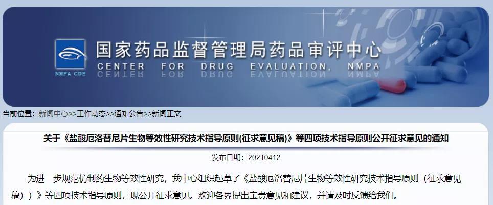 關(guān)于《鹽酸樂卡地平片生物等效性研究指導(dǎo)原則(征求意見稿)》等四項技術(shù)指導(dǎo)原則公開征求意見的通知