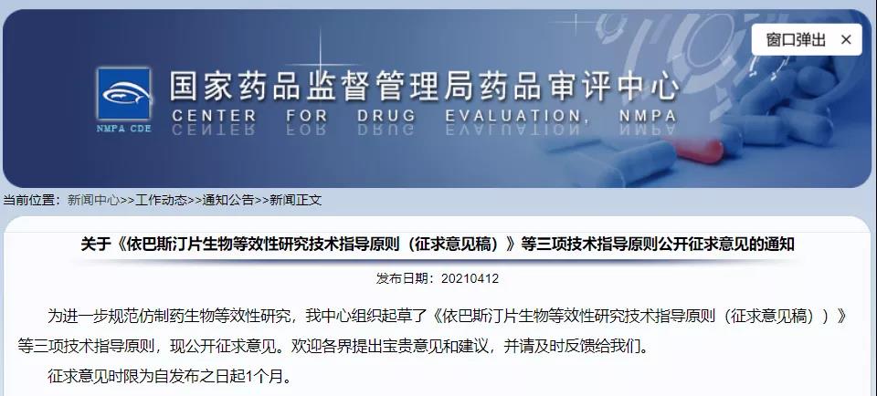 關(guān)于《依折麥布片生物等效性研究技術(shù)指導(dǎo)原則(征求意見稿)》等兩項技術(shù)指導(dǎo)原則公開征求意見的通知