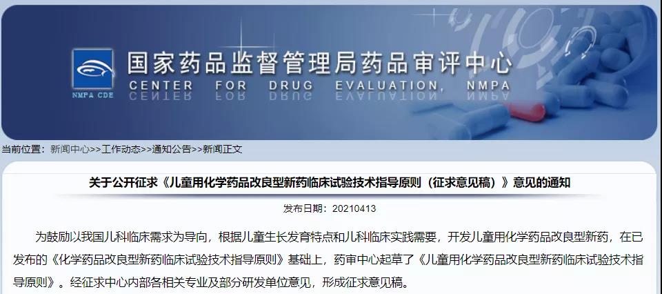 關(guān)于公開征求《兒童用化學(xué)藥品改良型新藥臨床試驗技術(shù)指導(dǎo)原則(征求意見稿)》意見的通知