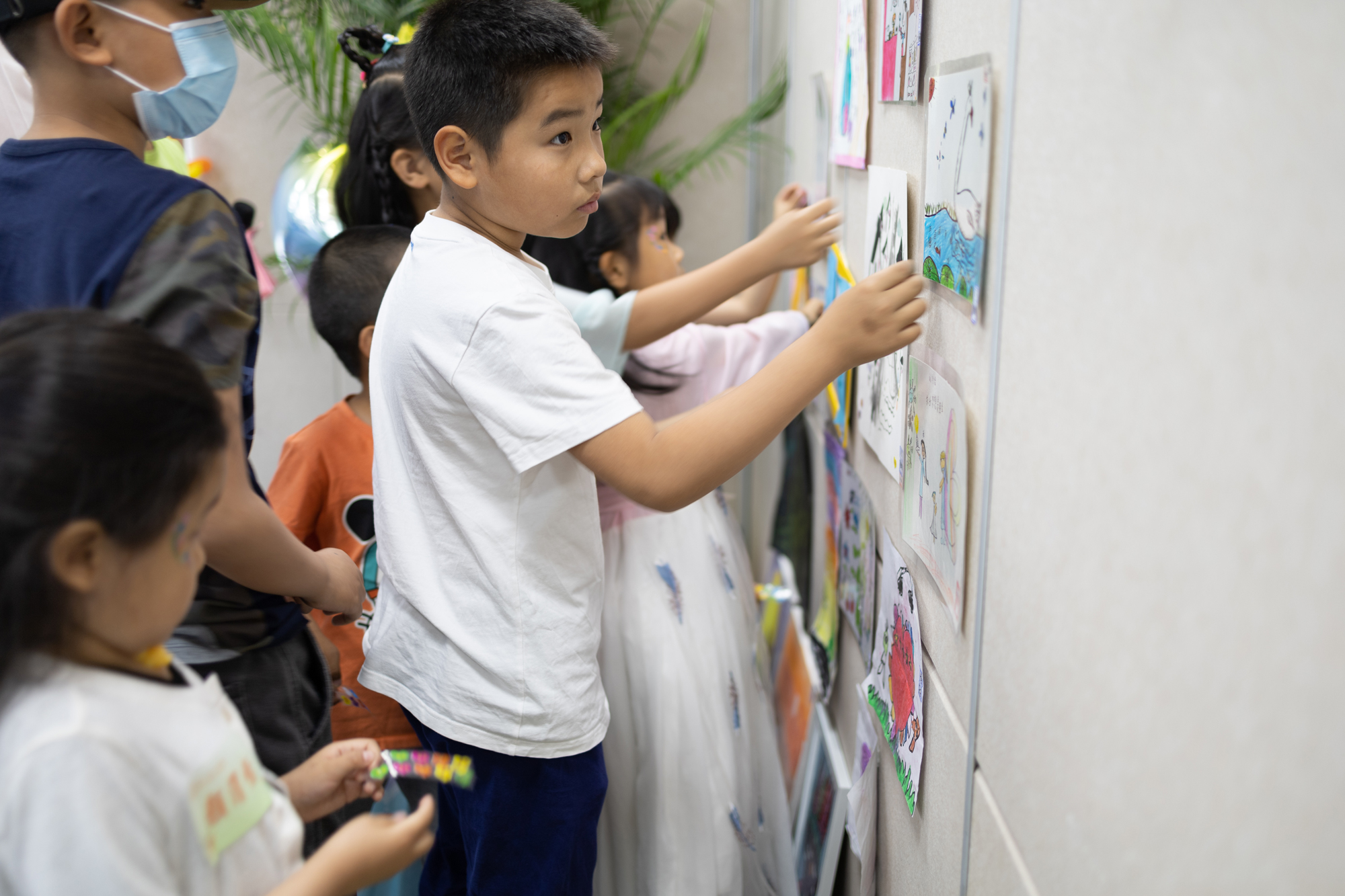 會場的墻面上,張貼了孩子們的繪畫作品,孩子們的畫作有的記錄了迷人的風景,有的描繪了自己長大后的夢想。天馬行空的小畫家們依次向大家介紹了自己的畫作,將自己的心聲與大家分享。