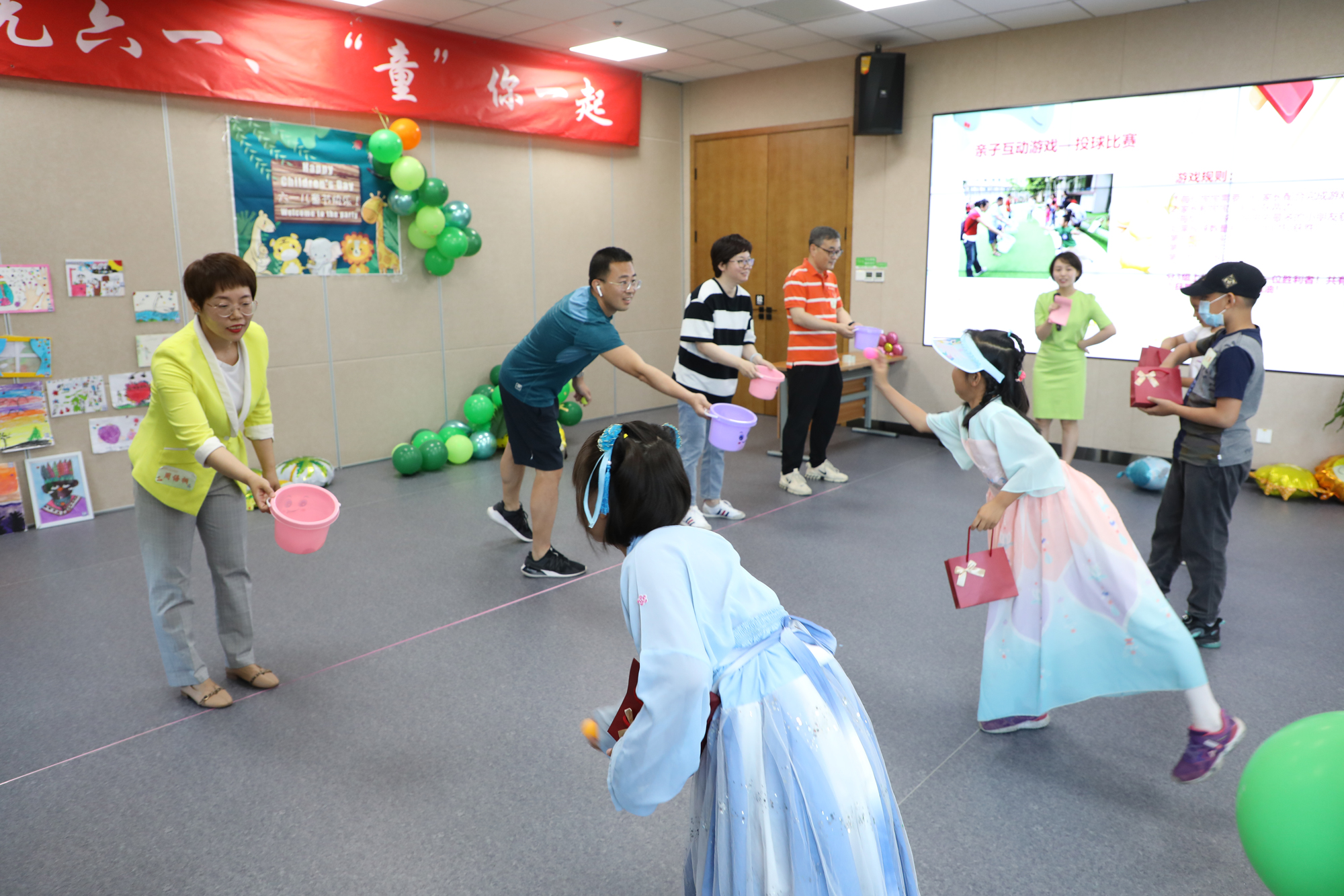 參觀過實驗室后,孩子們踴躍地參與到游戲環(huán)節(jié)中。孩子們分成兩個年齡組進行了搶板凳游戲。爸爸媽媽們也被邀請和孩子們一起參加隨后的投球比賽。