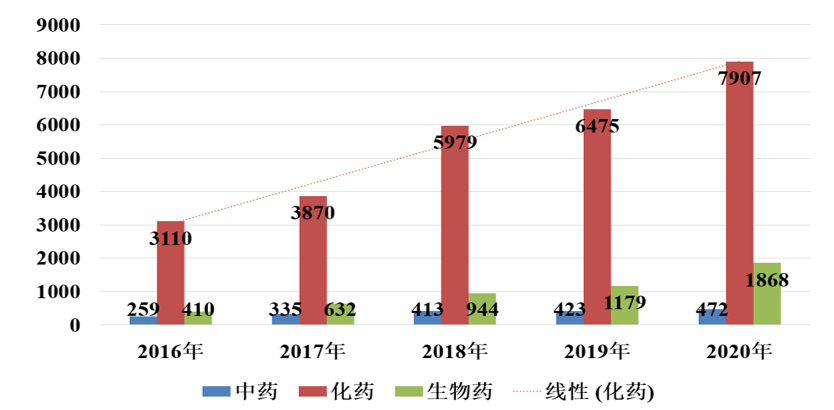 2、在國家新藥創(chuàng)新政策鼓勵下,以及資本的高度關(guān)注支持下,創(chuàng)新藥數(shù)量增長顯著。 其中,生物類新藥增長尤為矚目,是1類創(chuàng)新藥中的熱點(diǎn);