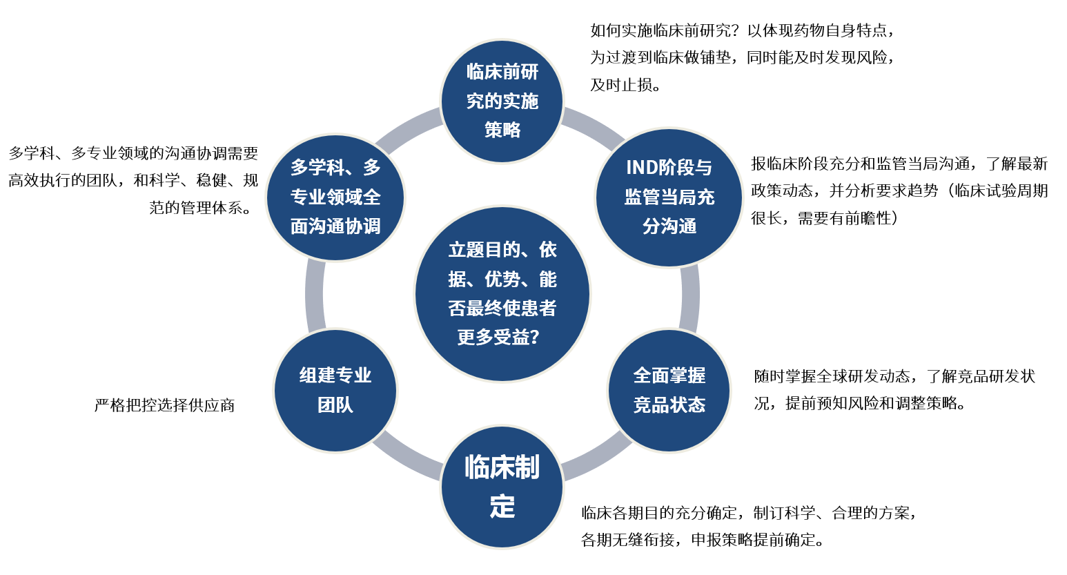2、各種銜接關(guān)鍵,包括臨床前與臨床的銜接,臨床各期之間的銜接;
