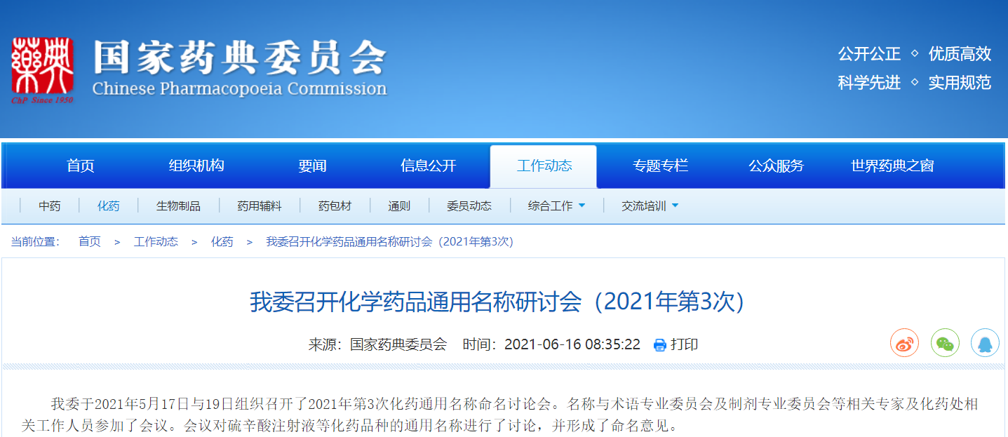 我委召開(kāi)化學(xué)藥品通用名稱研討會(huì)(2021年第3次)