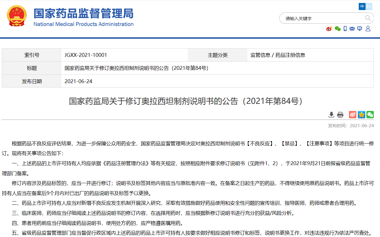 國(guó)家藥監(jiān)局關(guān)于修訂奧拉西坦制劑說(shuō)明書(shū)的公告(2021年第84號(hào))