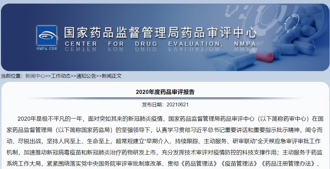 2020年度藥品審評(píng)報(bào)告發(fā)布!全年審評(píng)通過(guò)創(chuàng)新藥20個(gè)