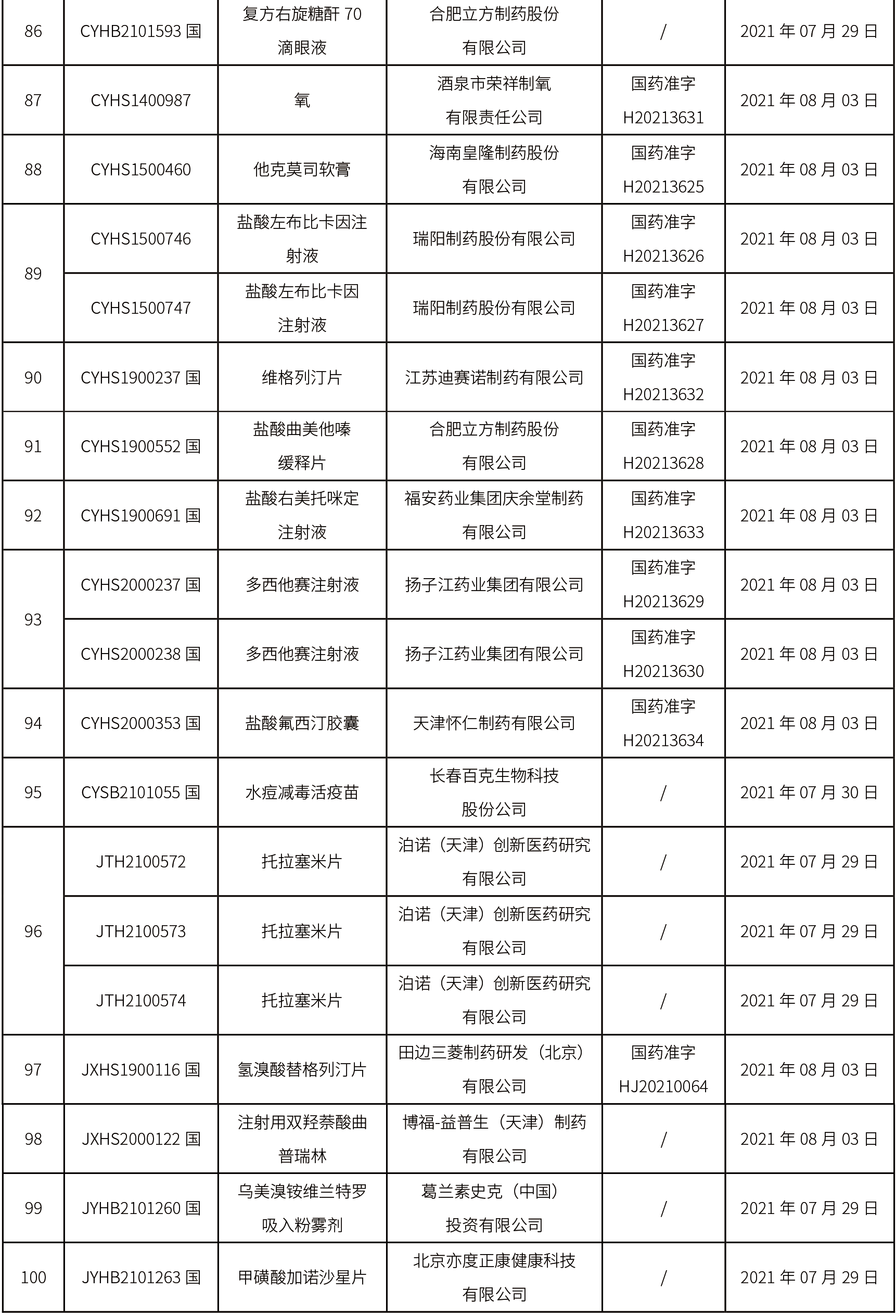 2021年8月3日中藥品種保護(hù)受理公示