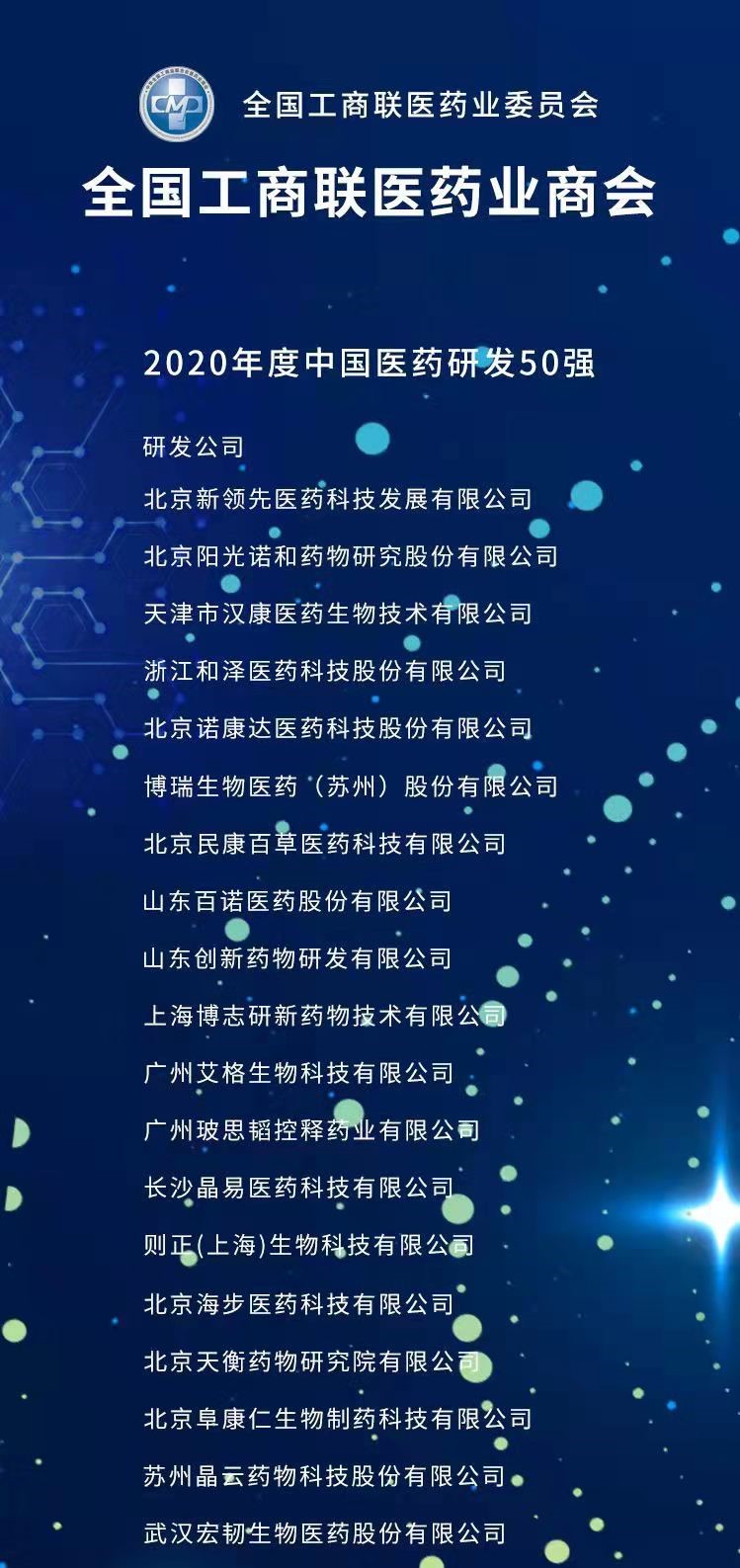 “2020年度中國(guó)醫(yī)藥行業(yè)成長(zhǎng)50強(qiáng)”