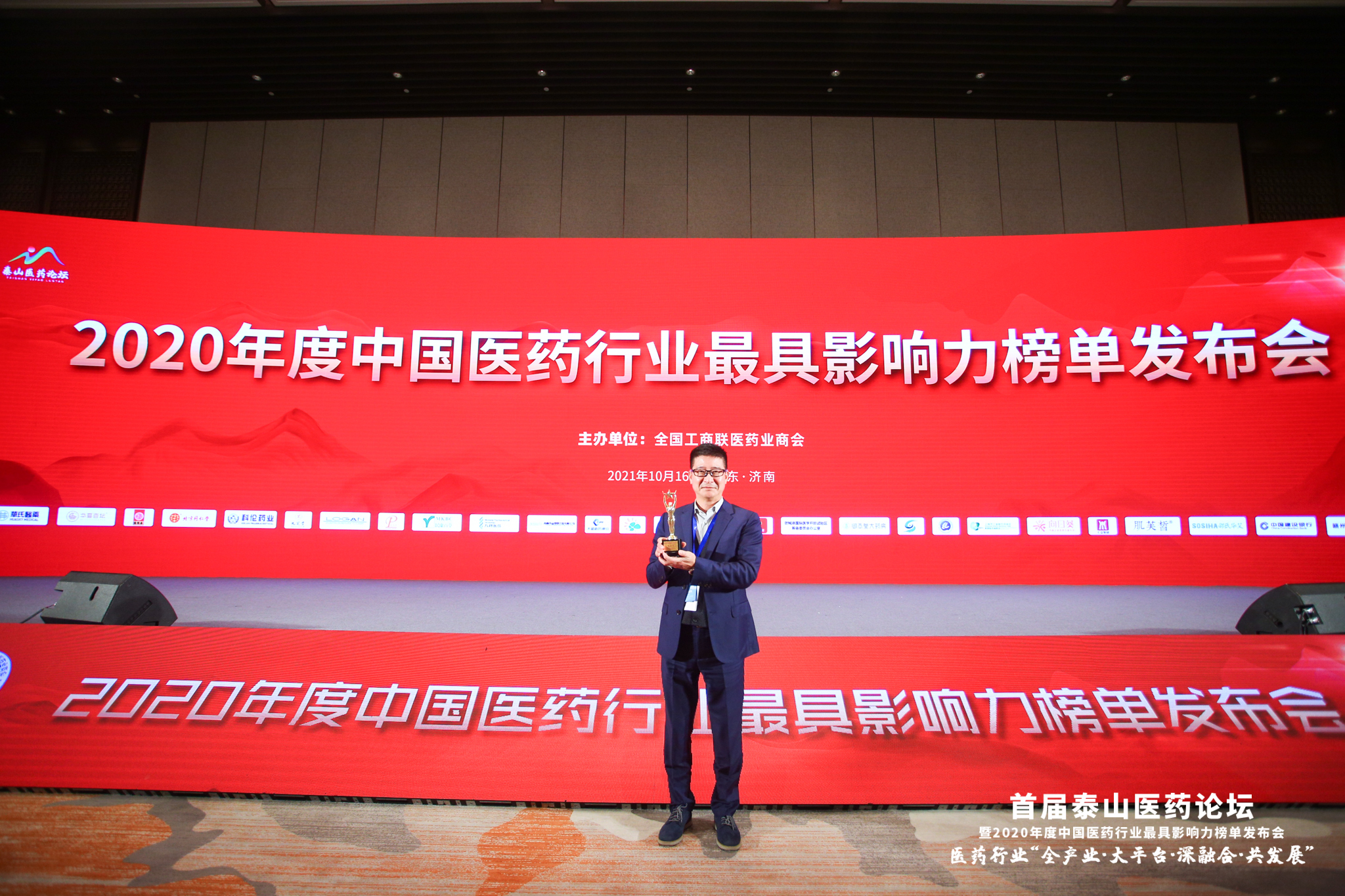 2021年10月16日,由中華全國(guó)工商聯(lián)醫(yī)藥業(yè)商會(huì)、中國(guó)藥店雜志社主辦的“首屆泰山醫(yī)藥論壇暨2020年度中國(guó)醫(yī)藥行業(yè)最具影響力榜單發(fā)布會(huì)”在山東濟(jì)南成功舉辦。