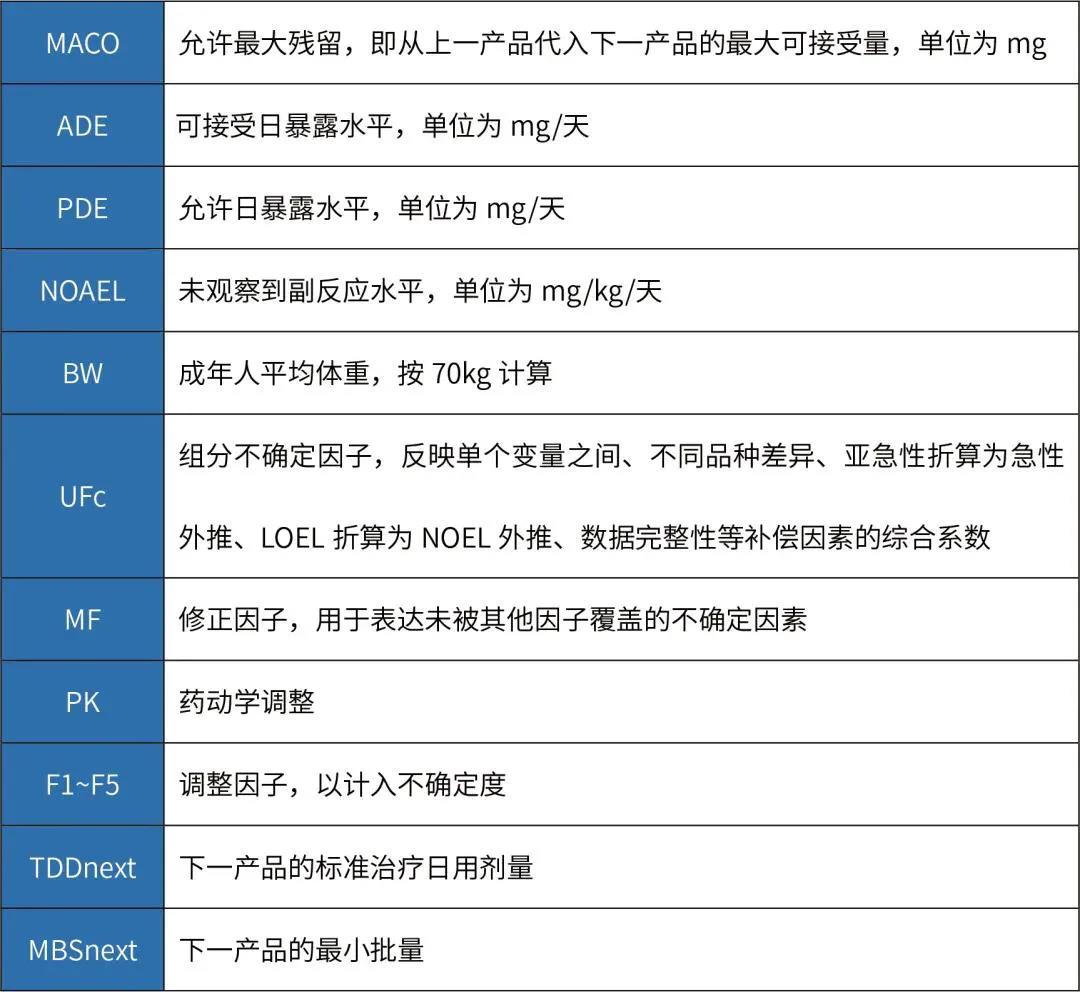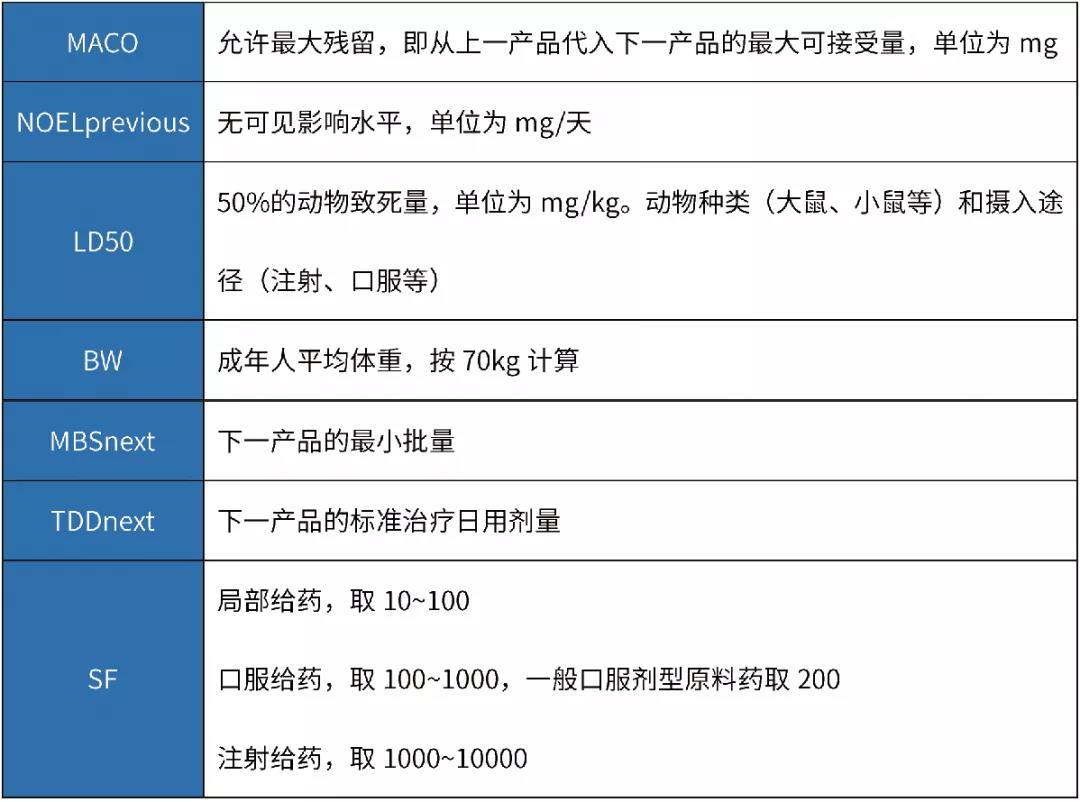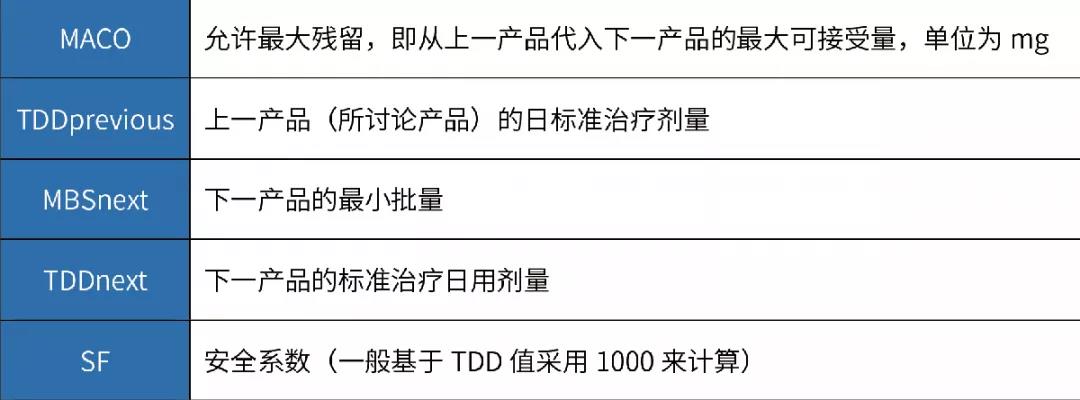 MACO代表產(chǎn)品A能進(jìn)入到產(chǎn)品B中的最大可接受量(mg);