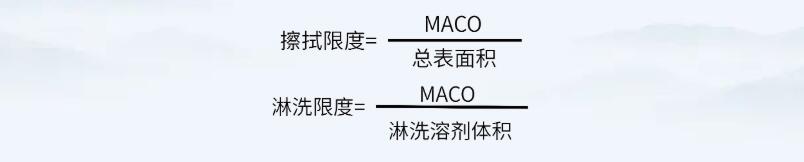 通過上述公式,確定MACO值后,即可通過如下公式,計(jì)算擦拭法及淋洗法的殘留可接受標(biāo)準(zhǔn)。