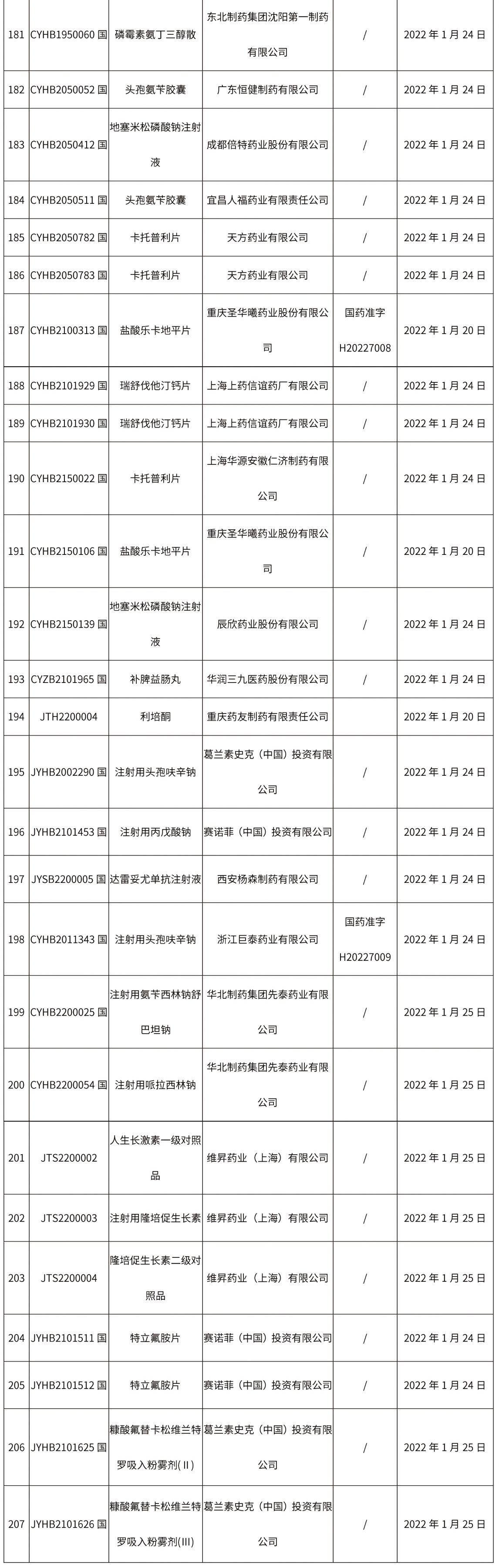 本周共計207個品種取得藥品批準(zhǔn)證明文件,其中一致性評價品種29個。