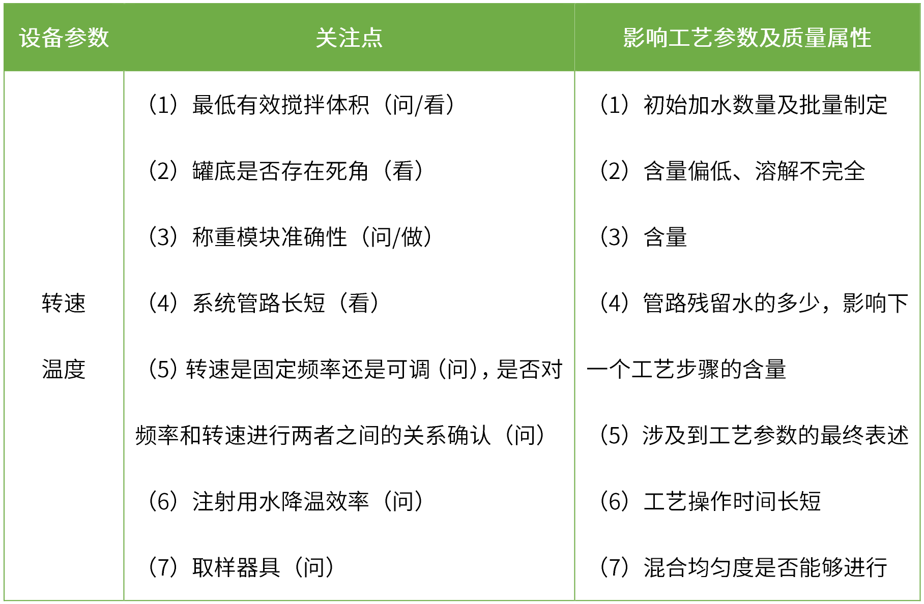 中試放大及工藝驗證作為小型的生產(chǎn)模擬實驗,其實驗規(guī)模和設(shè)備等外界條件均會對藥物的工業(yè)化生產(chǎn)產(chǎn)生影響,不可避免出現(xiàn)實驗室所不能發(fā)現(xiàn)的問題,重點關(guān)注設(shè)備相關(guān)參數(shù)、屬性等內(nèi)容,可減少資源浪費,節(jié)約成本。