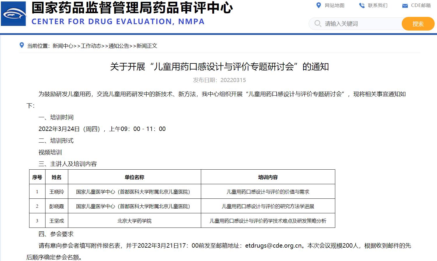 關(guān)于開展“兒童用藥口感設(shè)計(jì)與評(píng)價(jià)專題研討會(huì)”的通知