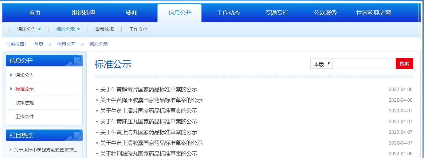 本周進(jìn)行牡荊油膠丸、牛黃上清膠囊、牛黃上清丸、牛黃降壓丸、牛黃上清片、牛黃降壓膠囊、牛黃解毒片7個(gè)品種國(guó)家藥品標(biāo)準(zhǔn)草案公示。