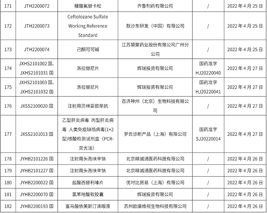 1、本周(截止到4.29下午4:00)共計182個品種取得藥品批準證明文件,其中一致性評價品種32個。