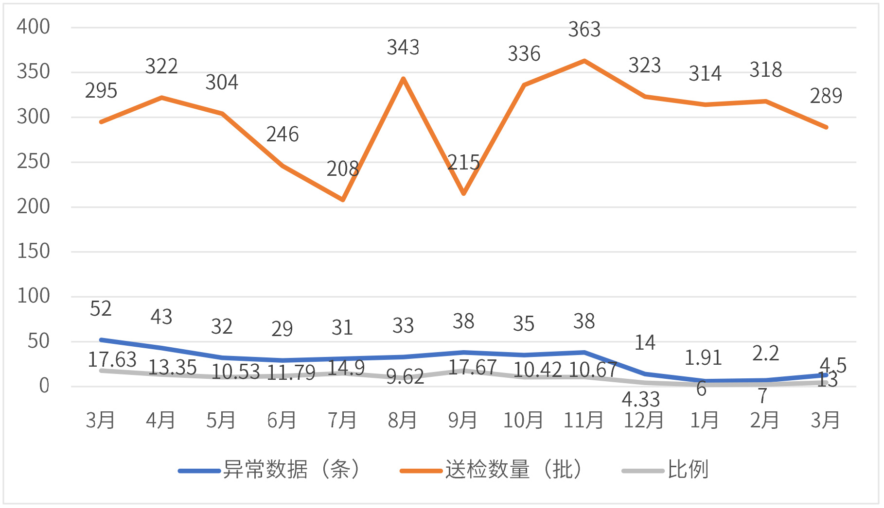 比例=異常數(shù)據(jù)/送檢數(shù)量