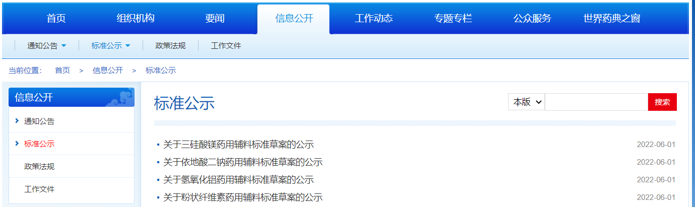 本周發(fā)布4種藥用輔料標準草案的公示。