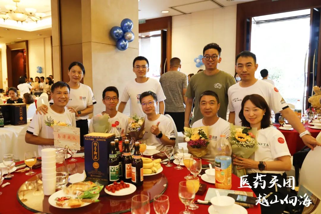 “醫(yī)藥天團”發(fā)起團隊代表、新領(lǐng)先醫(yī)藥總裁高世靜女士和越山向海組委會代表、眾輝智跑商務(wù)總監(jiān)尚研先生共同舉杯祝賀“醫(yī)藥天團”英雄們凱旋。接風宴現(xiàn)場舉行了隆重的頒獎典禮以及歡迎儀式,在歡聲笑語中為本次活動畫上了一個完美的句號。