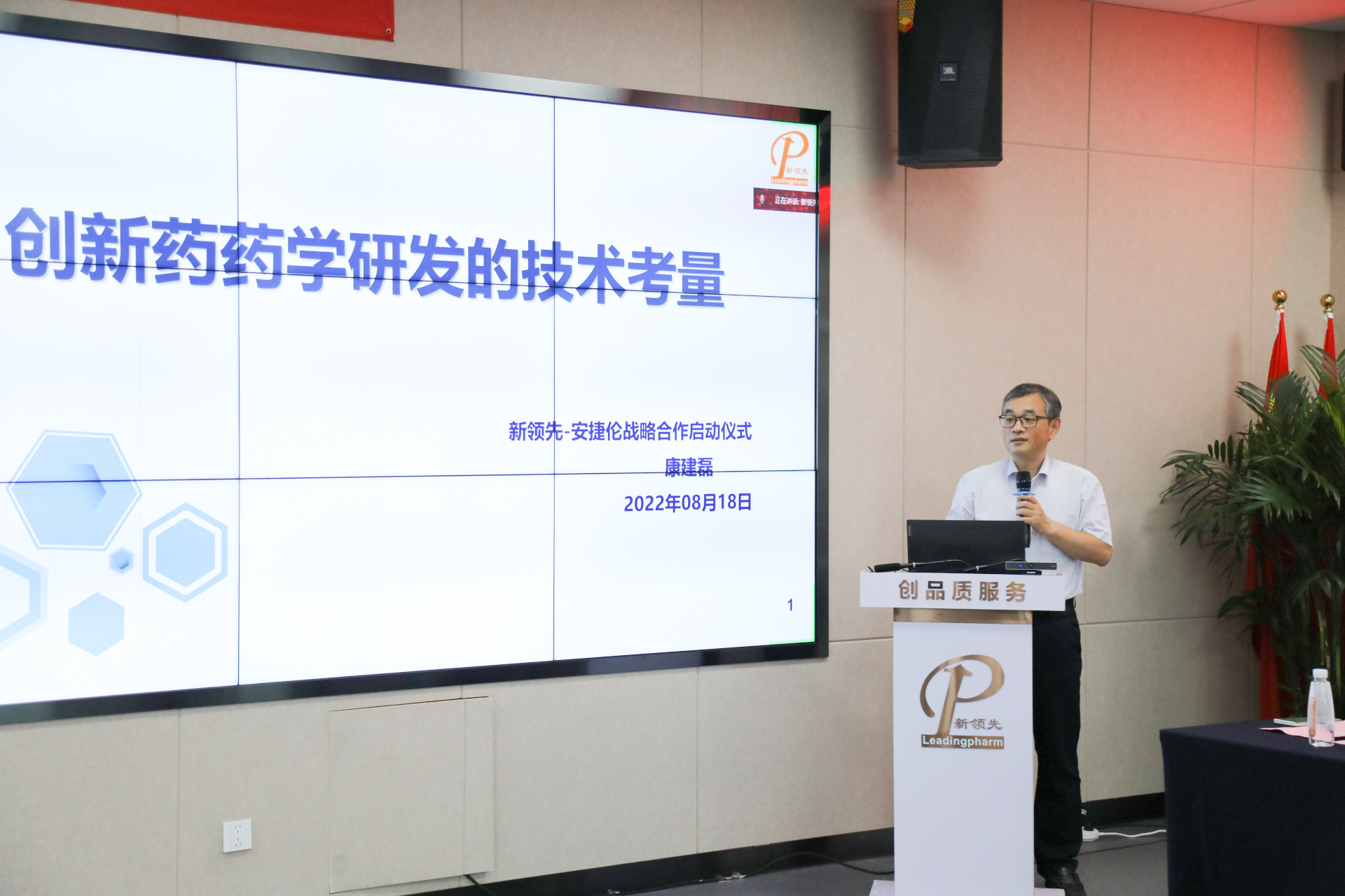 新領(lǐng)先副總裁兼首席技術(shù)官康建磊先生作《創(chuàng)新藥研發(fā)的藥學(xué)研究策略》主題報(bào)告。