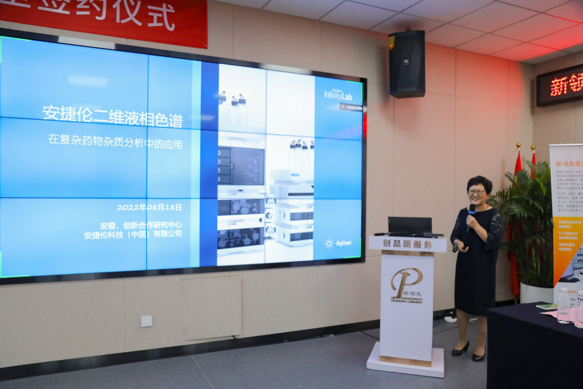 新領(lǐng)先醫(yī)藥總裁高世靜女士在致辭中,首先對(duì)推動(dòng)本次合作的雙方領(lǐng)導(dǎo)和到場(chǎng)見證的專家和嘉賓表示由衷的感謝。她表示,本次合作得到了新領(lǐng)先董事長(zhǎng)陶新華先生的大力支持。新領(lǐng)先是一家為全球制藥企業(yè)提供涵蓋創(chuàng)新藥、改良型新藥、仿制藥在內(nèi)的CXO全產(chǎn)業(yè)鏈服務(wù)的高新技術(shù)企業(yè),致力于攻克藥品研發(fā)全生命周期過程中各種技術(shù)問題,用創(chuàng)新的方式為客戶提供包括高端制劑研發(fā)、創(chuàng)新藥臨床研究、質(zhì)量體系建設(shè)、醫(yī)學(xué)方案設(shè)計(jì)指導(dǎo)等在內(nèi)的全面解決方案,贏得了近400家客戶的認(rèn)可。新領(lǐng)先始終秉承“以客戶為中心”的服務(wù)理念,為客戶創(chuàng)造最大的價(jià)值,這點(diǎn)與安捷倫公司高度一致。安捷倫作為生命科學(xué)診斷和應(yīng)用化學(xué)市場(chǎng)領(lǐng)域全球領(lǐng)導(dǎo)品牌,在儀器應(yīng)用和檢測(cè)技術(shù)方面的優(yōu)勢(shì)突出,希望雙方強(qiáng)強(qiáng)聯(lián)手,依托創(chuàng)新研究聯(lián)合實(shí)驗(yàn)室,實(shí)現(xiàn)優(yōu)勢(shì)互補(bǔ),通過相應(yīng)合作課題的研究,更好地服務(wù)雙方共同的客戶,解決行業(yè)中的關(guān)鍵技術(shù)、熱點(diǎn)難題,有效推動(dòng)行業(yè)的發(fā)展。也希望通過新領(lǐng)先CXO開放的平臺(tái),協(xié)同產(chǎn)業(yè)鏈和供應(yīng)鏈合作伙伴,實(shí)現(xiàn)更多以滿足臨床需求為根本的新技術(shù)、新產(chǎn)品上市,解決患者的用藥需求。