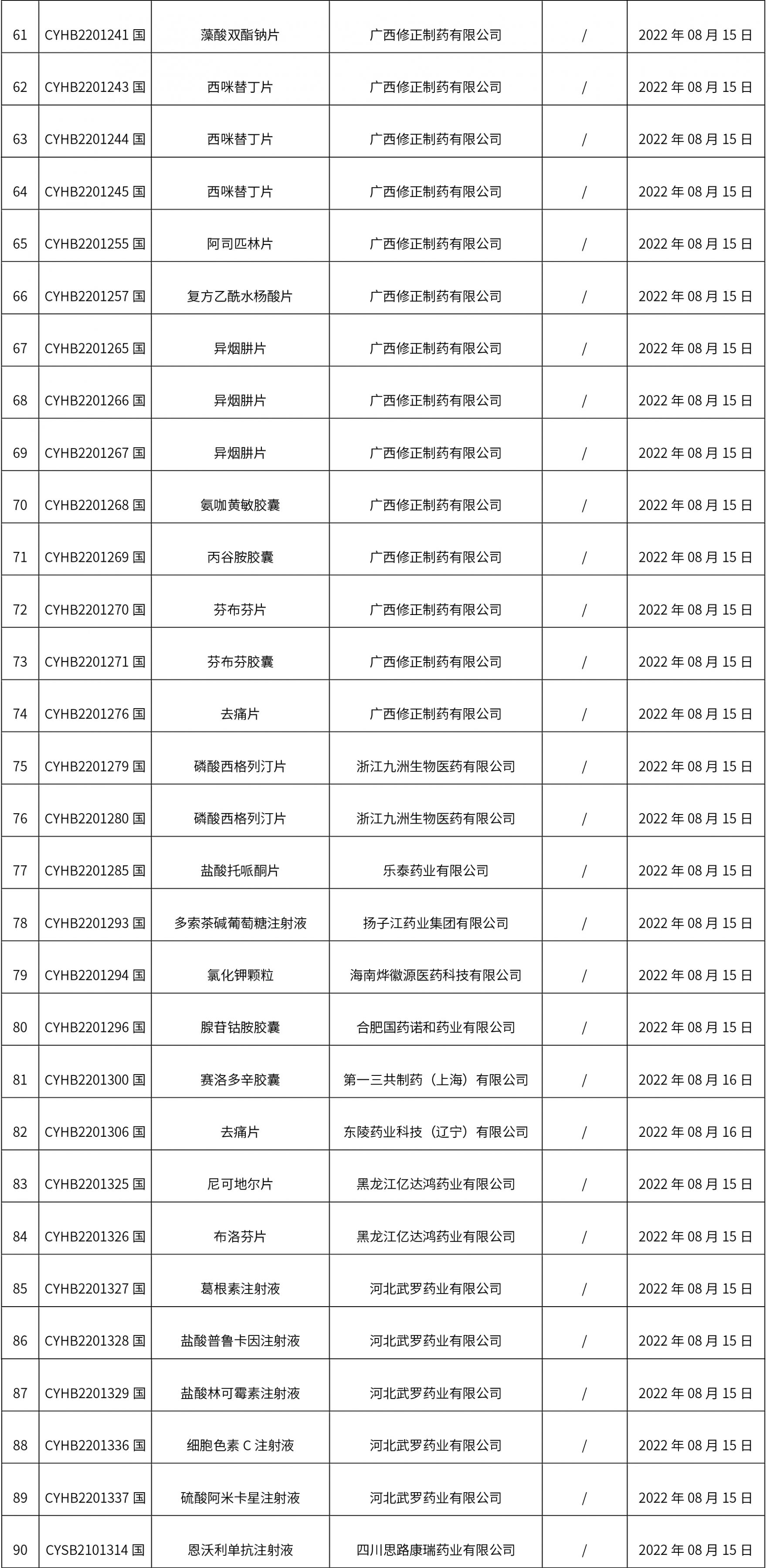 1. 本周(截止到8.19下午2:48)共發(fā)布了134個品規(guī)的藥品批準(zhǔn)證明文件待領(lǐng)取信息,其中一致性評價 15個,注射劑 35個。